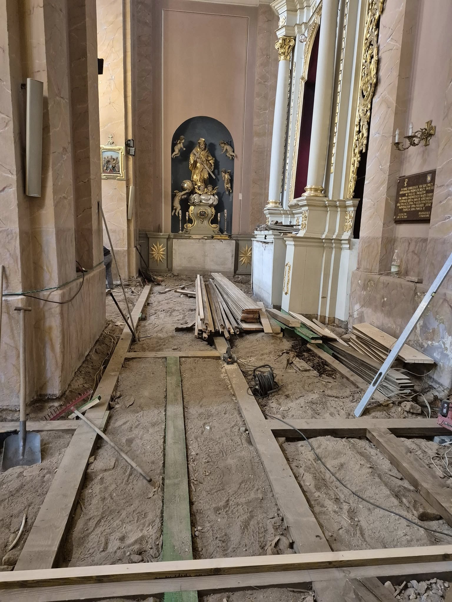 Prace przy podłodze w kościele pw. Imienia Najświętszej Maryi Panny w Szczuczynie rozpoczęto 21 stycznia 2025 r.